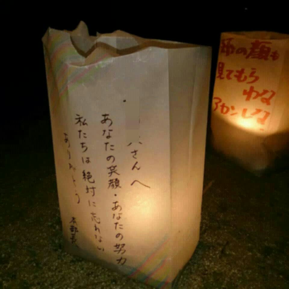 日が暮れる頃からはルミナリエセレモニーが始まりました。この灯りの一つひとつにがんに対する想いやがんで亡くなった大切な人へのメッセージ等が書かれており、読みいってしまうものもありました。