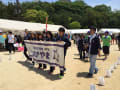 開会式で南出 尚美実行委員長から「はからずもがんになってしまった患者さん、愛する人を失った家族や友人達、治療に取り組んでくれる医師や看護師、関係者の方々。皆様が同じ目標に向かって協力し、がんと向き合うこのリレーフォーライフイベントを通して、がん患者支援の輪が広がり、がんに負けない心と社会ができることを願います。たすきをつなぎ、共に孤独と不安の夜を越え、希望の象徴である夜明けを笑顔で迎えましょう。」とのメッセージがあった後、ブラスバンドの演奏が始まり、サバイバーが最初の1周を回りました。