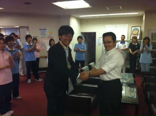 そして古川選手が当苑に到着された時には、温かい拍手とともに労いの言葉がかけられ、心が和む雰囲気に包まれました。
