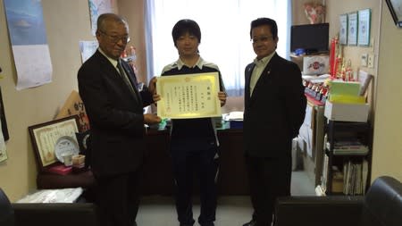 平成27年7月9日(木)、中芝市長が来苑下さり、感謝状を贈呈していただきました。