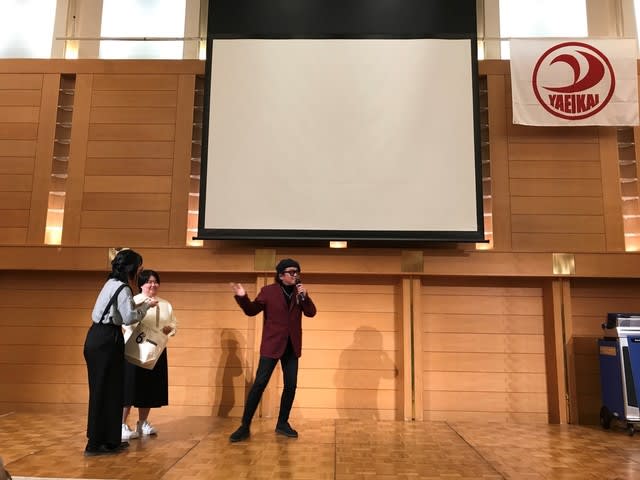 スクリーンに点数が出ないというアクシデントがありながら、結果は白組が勝ち、最高得点賞は龍田科長、今年就職されました新人コンビ(金丸介護士・坂口介護士)には、TONPEI賞が授与され、TONPEI様にも1曲披露していただきました。