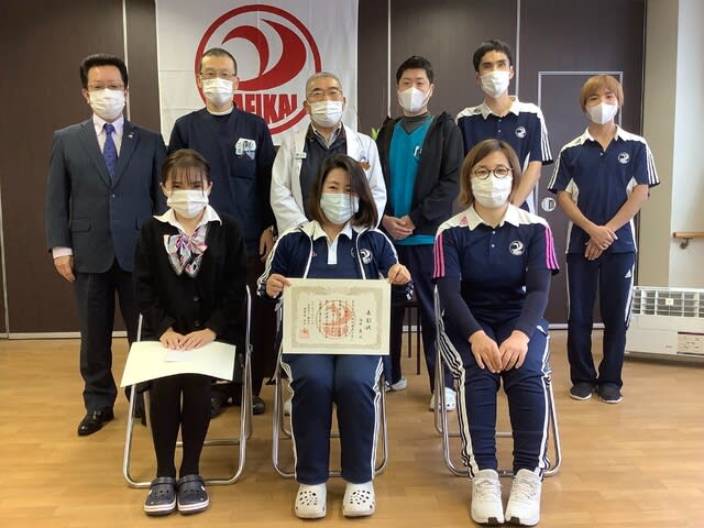 まず、坂頭院長をはじめ、やよいメディカルクリニック職員3名、やよい苑職員3名の計6名が今年の永年勤続十年表彰を受けられました。