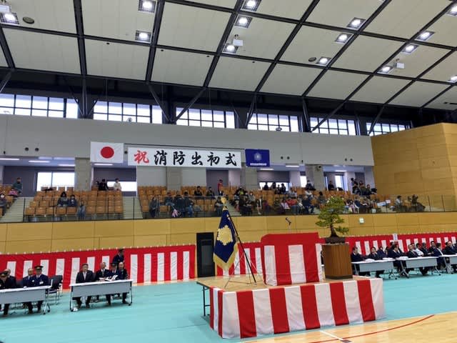 第1部式典は、那賀消防組合消防本部・次長開会宣言にて始まり、那賀消防組合管理者・中芝正幸岩出市長からの式辞、那賀消防組合・西岡孝芳消防長による年頭の誓い、また来賓の先生方からのご挨拶があり、防災や取り組みについてのお話を聞くことができました。