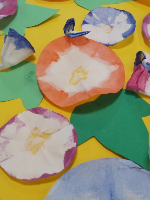 たくさんの利用者様の力が合わさり、色とりどりのアサガオができあがりました!