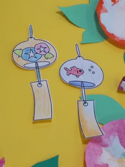 今度は七夕飾りの作成です。折り紙などを用い作成したものを少しずつ飾りつけていきます。