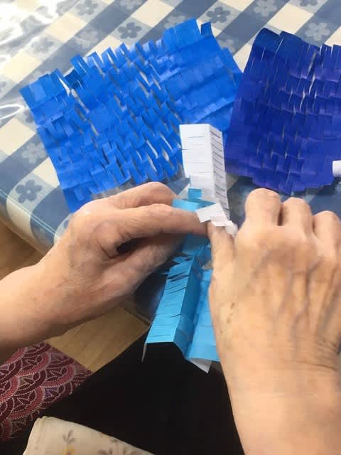 このような創作活動は利用者様に楽しんでいただくことはもちろんのこと、指先を動かすことで脳の活性化のリハビリテーションになると考えています。