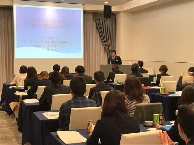 午後からは、あいおいニッセイ同和損害保険株式会社 和歌山支店の田波様に「クレーム対応」についての講和とグループワークを行いました。