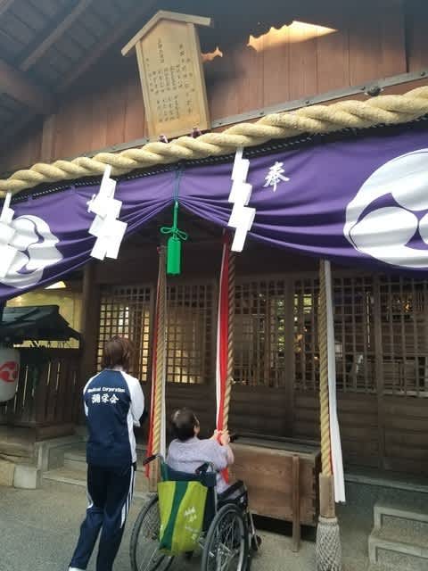 「やっぱり今年も大宮神社に来ないと始まった気がせーへんわ。デイケアに来てるからつれってくれるけど、家におっても一人で行ったらあかん言われるし、でも家族らは用事で連れってくれる暇ないし。ほんまにありがとうな。やよい苑のおかげやわ」と。