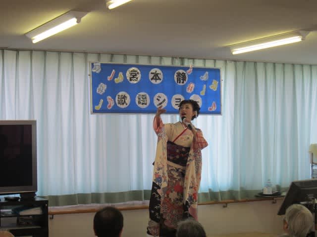 前半はご利用者に宮本静さんの歌声を存分に聞き入っていただき、後半はご利用者の知っている曲を宮本静さんと会場の皆さんと一緒になって歌っていただきました。