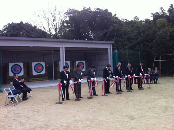 昨年末に岩出市根来若者広場サッカー場にアーチェリー競技の特設練習場が完成し、1月14日(土)9時30分よりオープニングセレモニーが開催されました。