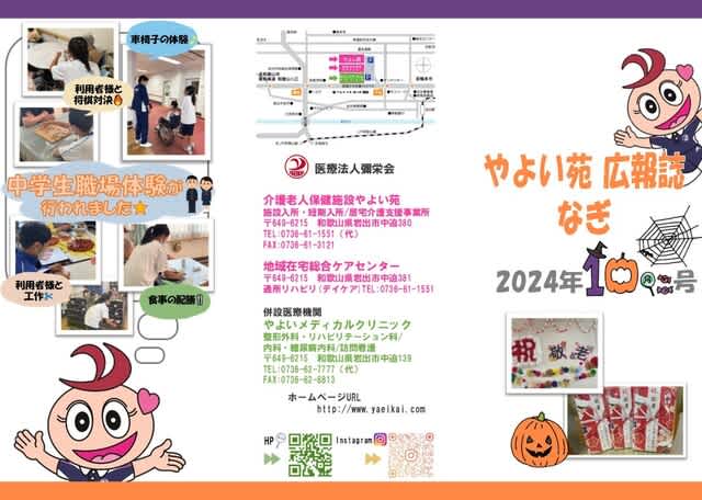 介護老人保健施設やよい苑 広報誌「なぎ」10月号 2024.10.01 10月号内容は ☆敬老イベント「入所」「デイケア」🍂 ☆食事紹介🍴 となっております! 是非ご覧ください♪ 介護老人保健施設やよい苑 -和歌山県岩出市の介護施設- 岩出市の介護老人保健施設やよい苑の情報。デイケア、ショートステイ、訪問介護、居宅介護支援を行っております。 介護老人保健施設やよい苑 投稿者:なぎ編集委員会 クリニック便り~2024年インフルエンザワクチン予防接種のお知らせ~ 前の記事 広報誌「なぎ」11月号 次の記事