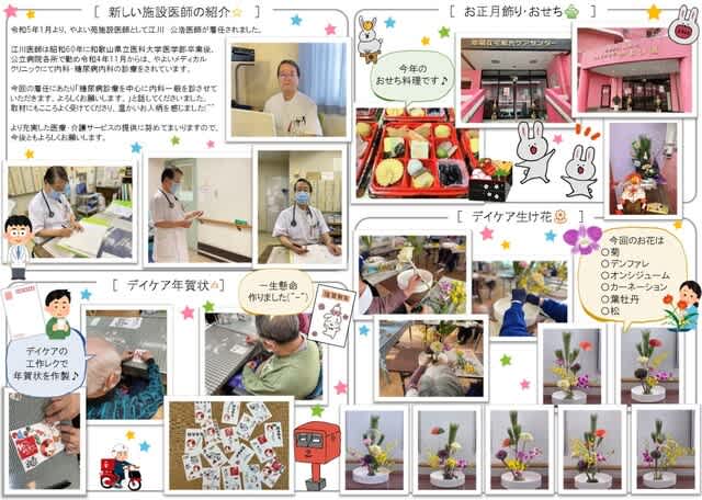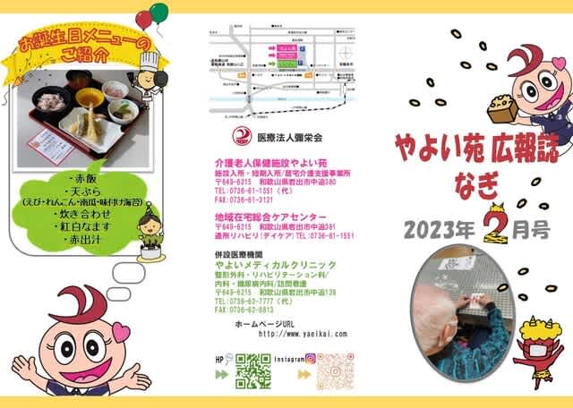 介護老人保健施設やよい苑 広報誌「なぎ」2月号 2023.02.01 2月号内容は ☆お正月飾り・おせち🎍 ☆新しい施設医師の紹介☆ ☆デイケア 生け花🌼 ☆デイケア 年賀状✎ となっております! 是非ご覧ください♪ 介護老人保健施設やよい苑 -和歌山県岩出市の介護施設- 岩出市の介護老人保健施設やよい苑の情報。デイケア、ショートステイ、訪問介護、居宅介護支援を行っております。 介護老人保健施設やよい苑 投稿者:なぎ編集委員会 クリニック便り~年末年始・休診のお知らせ~ 前の記事 やよい苑からのお知らせ~施設医師のご紹介~ 次の記事