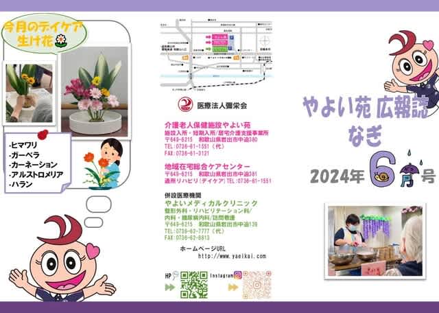 介護老人保健施設やよい苑 広報誌「なぎ」6月号 2024.06.01 6月号内容は ☆入所おやつ🍓 ☆デイケア工作レク✂ ☆新人職員研修(座学)✏ となっております! 是非ご覧ください♪ 介護老人保健施設やよい苑 -和歌山県岩出市の介護施設- 岩出市の介護老人保健施設やよい苑の情報。デイケア、ショートステイ、訪問介護、居宅介護支援を行っております。 介護老人保健施設やよい苑 投稿者:なぎ編集委員会 クリニック便り~ニンニク点滴 ・割引キャンペーンのお知らせ~ 前の記事 広報誌「なぎ」7月号 次の記事