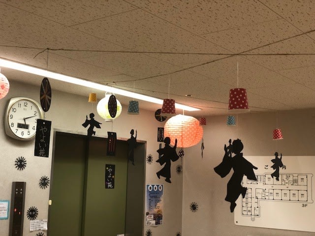 今回の飾りは「お祭りの雰囲気を楽しむ」目的で、行事実行委員会のメンバーでもある施設のスタッフが主となって、飾り付けをしてくれました。
