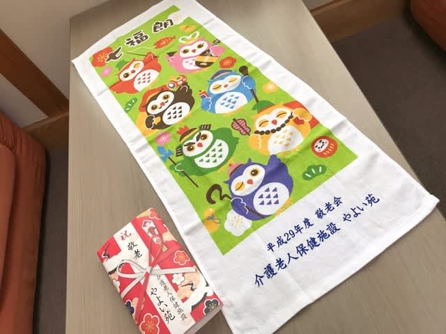 今年のプレゼントはやよい苑の名前入りのタオルをご用意しました。
