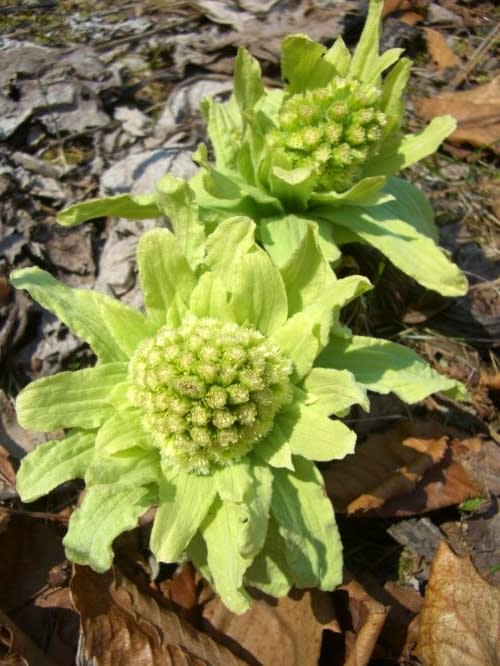 あっという間に花が咲き、遅れて葉が出て柄(蕗・ふき)が出てきます。