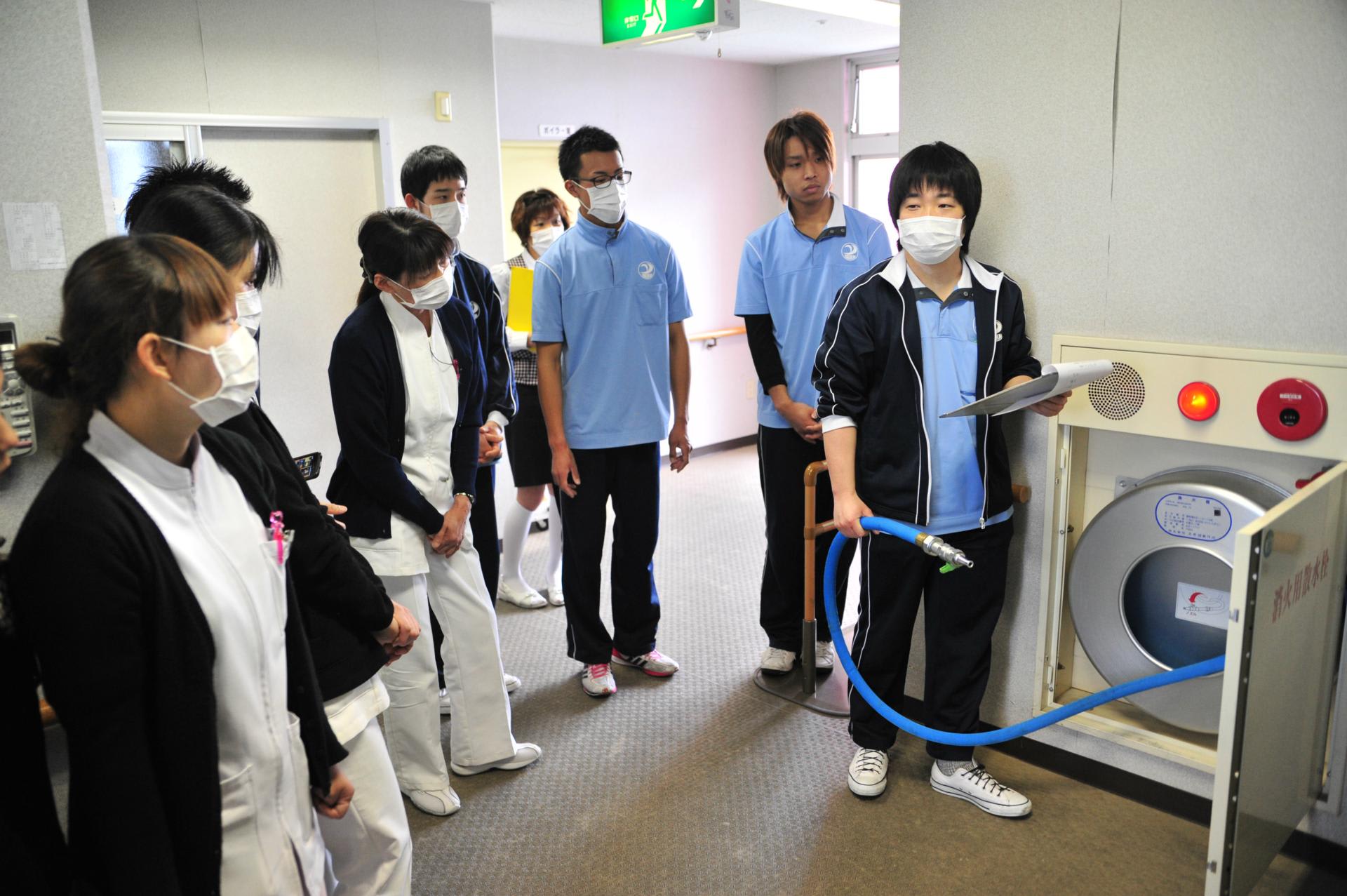 ある程度訓練をしていただいてから、施設やマンションに設備されている屋内消火栓の説明をしてもらいました。