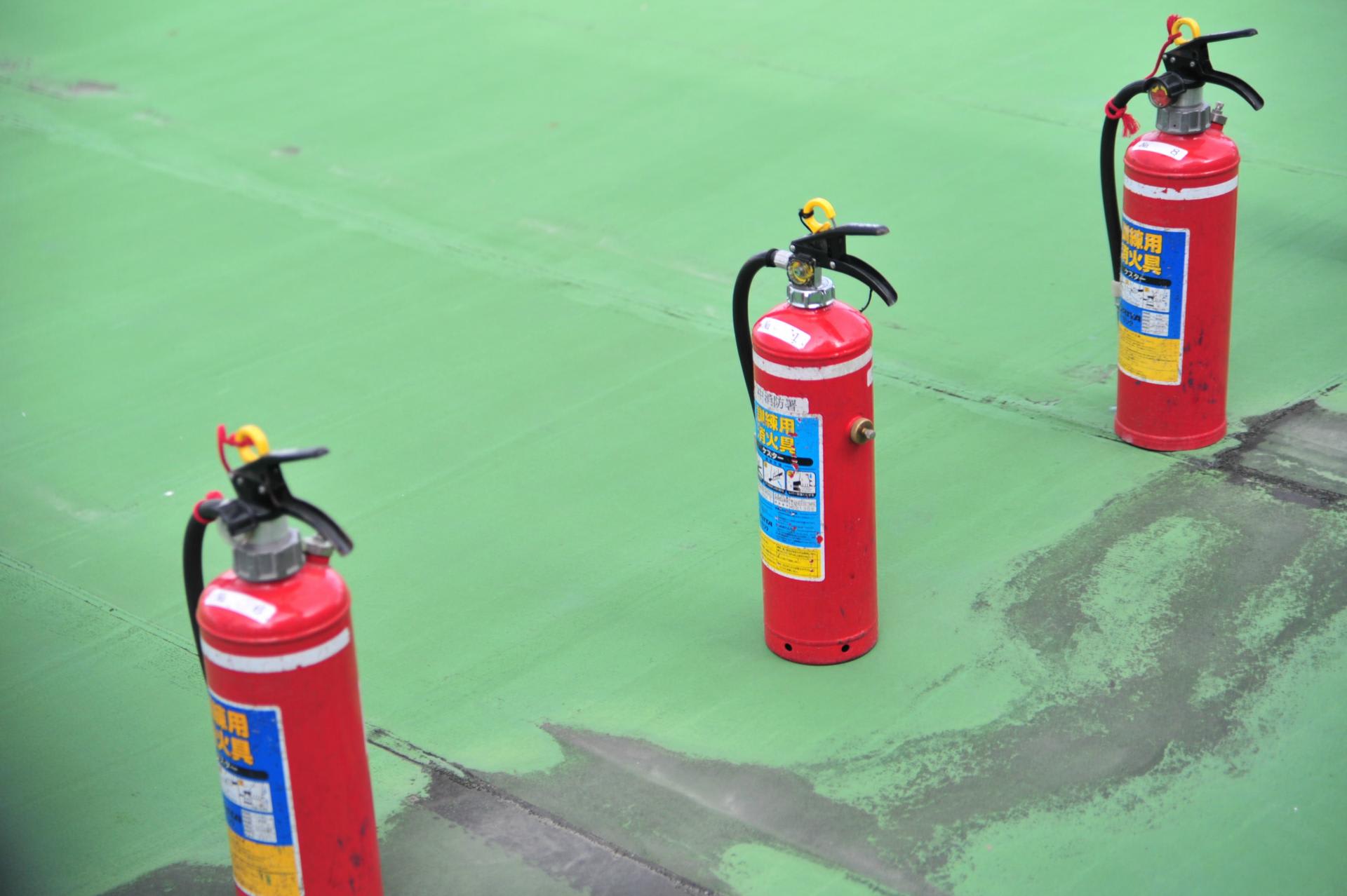 (使用した消火器は訓練用に粉末ではなく水が入っています。)