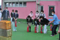 まず、消火器の使い方を説明し、その後、実践していただきました。