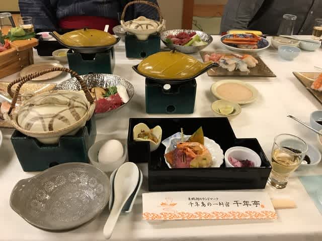 水木しげるロード散策後、いよいよ本日の宿「千年亭」へ移動し、この旅の夜のメインとも言える夕食、宴会の時間を迎えました。