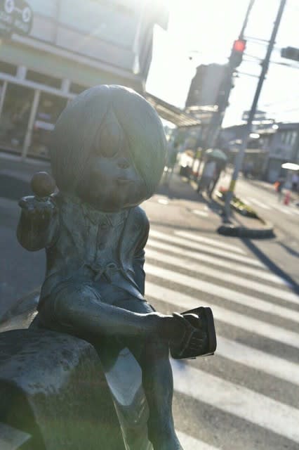 水木しげるロードと呼ばれる商店街は観光客で賑わい、道のあちらこちらにはたくさんのオブジェが目に留まりました。