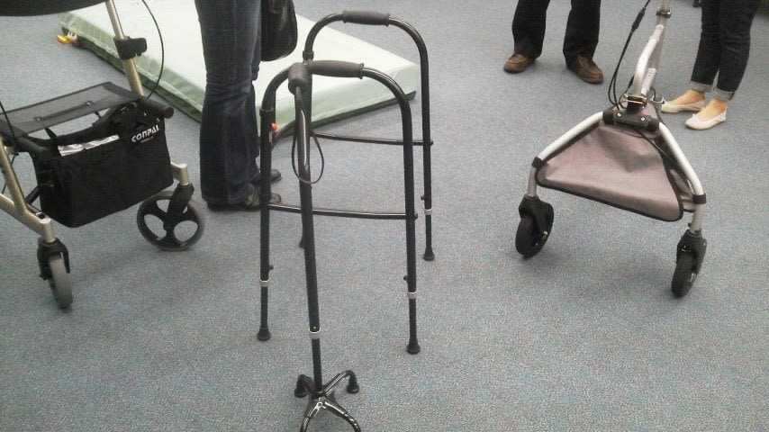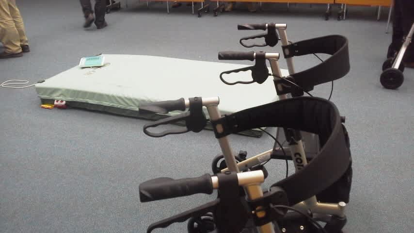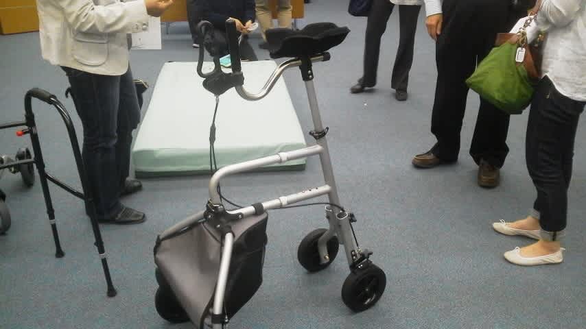 マグネシウム合金を使用した超軽量の4点杖と4点歩行器、7~8kgの現時点で最軽量の車椅子等色々な最新の福祉用具に触れることができました。