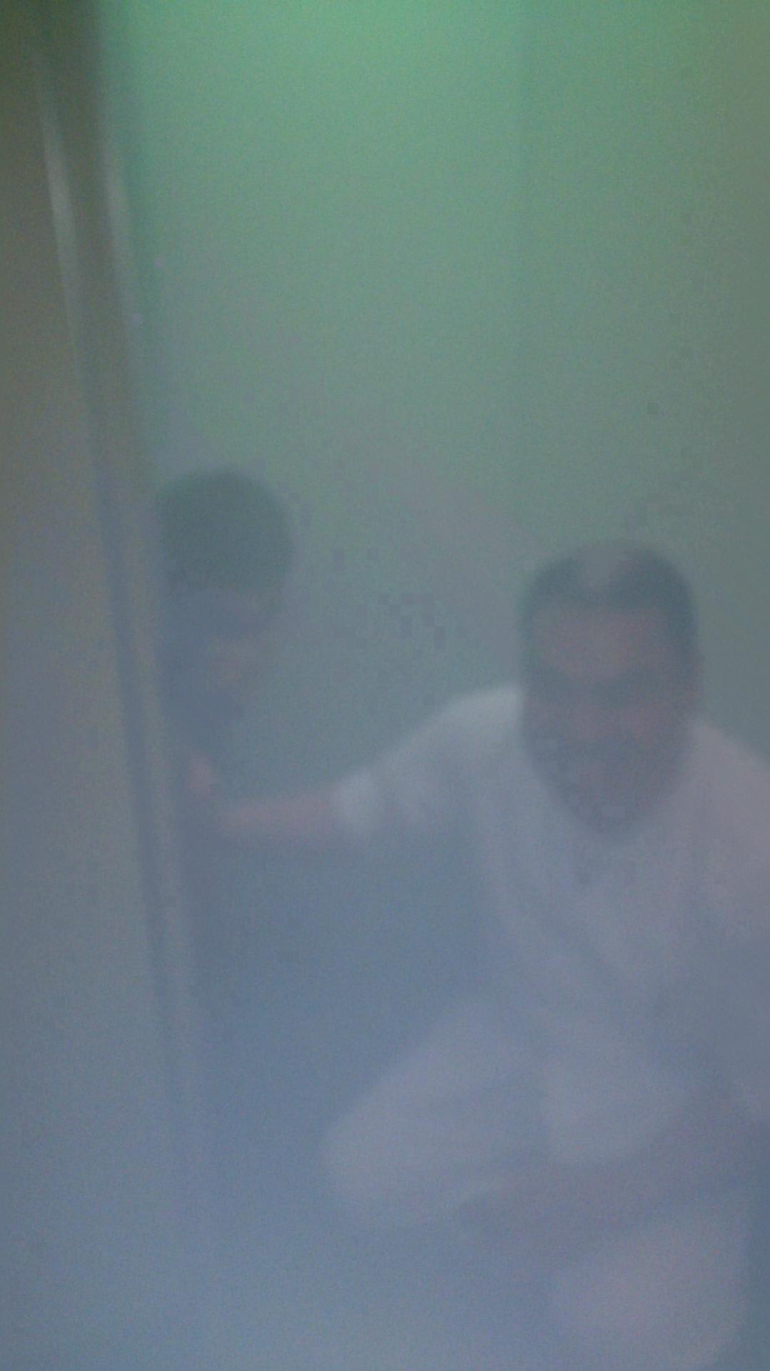 人体に無害な煙が充満した迷路を抜ける体験をしました。