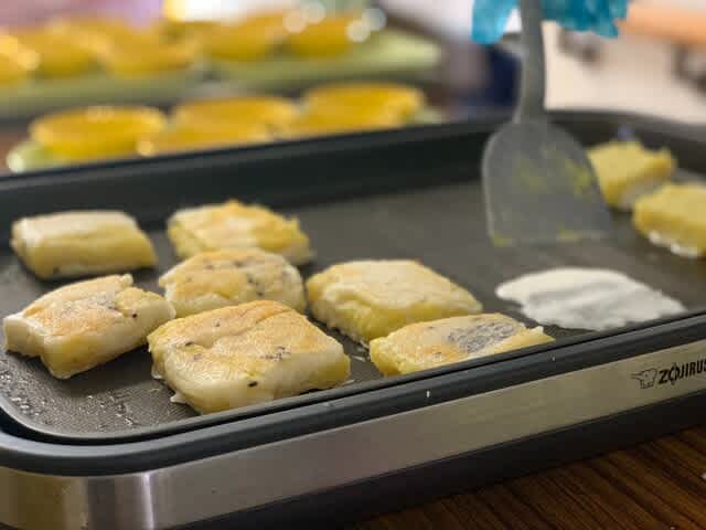 そこからは、我慢して触らず、じっくり焼くのがいいねとCWのAさんのつぶやきで気長に待つことに・・・「なんちゃってきんつば」の出来上がり!