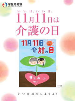 厚生労働省のホームページによると、これは、高齢者や障害者に対する介護に関し国民への啓発を重点的に実施するため、平成20年より11月11日は介護の日と定めたようです。