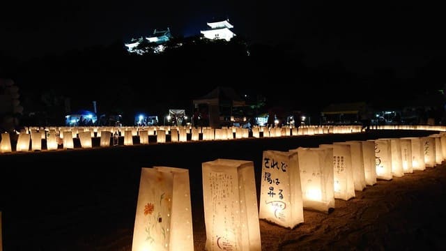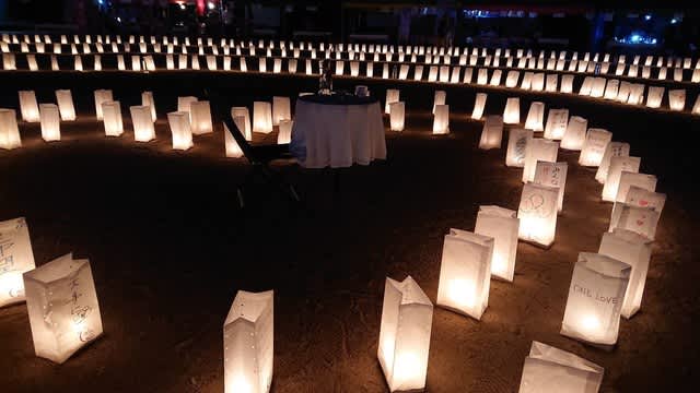 夜はルミナリエバッグには明かりが灯されており、その一つひとつにがんに対する想いやがんで亡くなった大切な人へのメッセージ等が書かれていました。