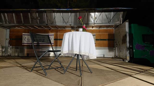 エンプティテーブルは、会場に来ることができなかった、またがんとの闘いの中、亡くなった人の席で、白いテーブルに空いた椅子を並べます。